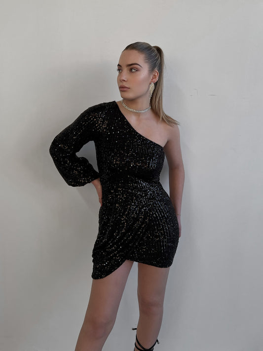 AanbiedingSEQUIN DRESS ONESLEEVE BLACK