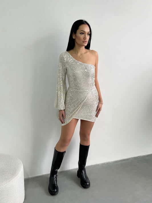 AanbiedingSEQUIN DRESS ONESLEEVE CHAMPAGNE